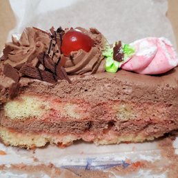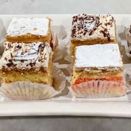 Amazing customer service, delicious cakes, and other irresistible treats (like the Napoleon pastry)! I've been here a few times and usually grab a few cookies along with the Napoleon pastry, which is criminally good. This was my first time ordering a cake, and it won't be the last. At 5pm, I called to see if they had any strawberry cakes left. They said they had a few and would hold one for me--a pro move, (thank you Gina!!), because by the time I arrived at 6pm, the cake counter was nearly empty. They even customized the cake with my friend's name and wrapped it up perfectly for me to take home. The cake was a huge hit, and I'll definitely be getting it again. Now I understand why almost everyone leaves with a cake box! You don't need a special occasion, this cake is what you want to just celebrate another day of living!!!